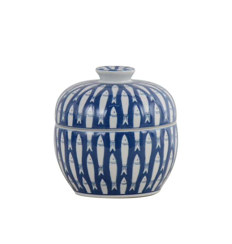 BOX 'FISH' WHITE/BLUE CERAMIC D15x15h