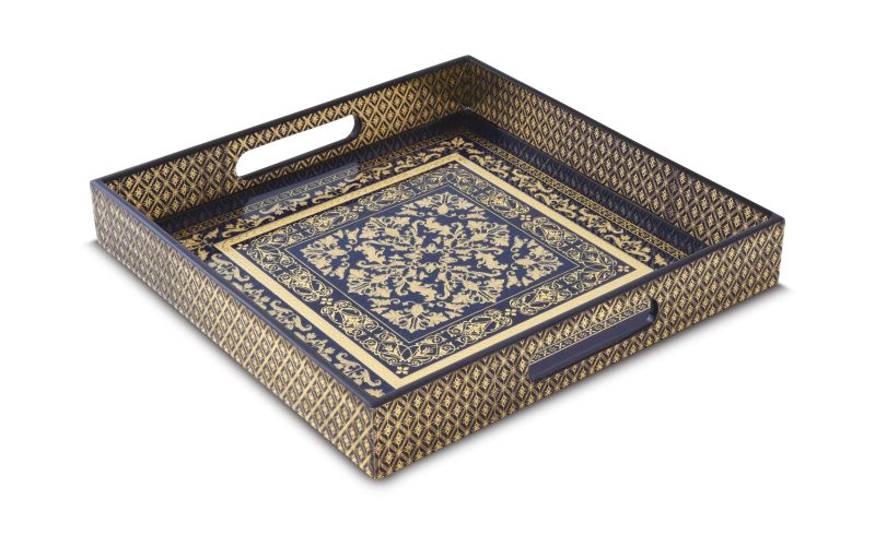 Square MDF tray 30x30x4,5 cm in c.b. BAROQUE - BEIGE/BLUE