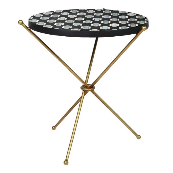 Green Bone Inlay Cross Leg Side Table