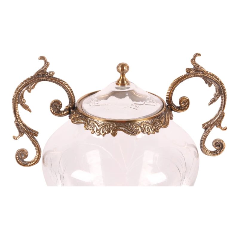 *This golden vase, made of glass and aluminium, is a masterpiece of elegance. The glass, with its refined finish, is complemented by graceful handles in a unique shape, which give the classic design a timeless beauty.