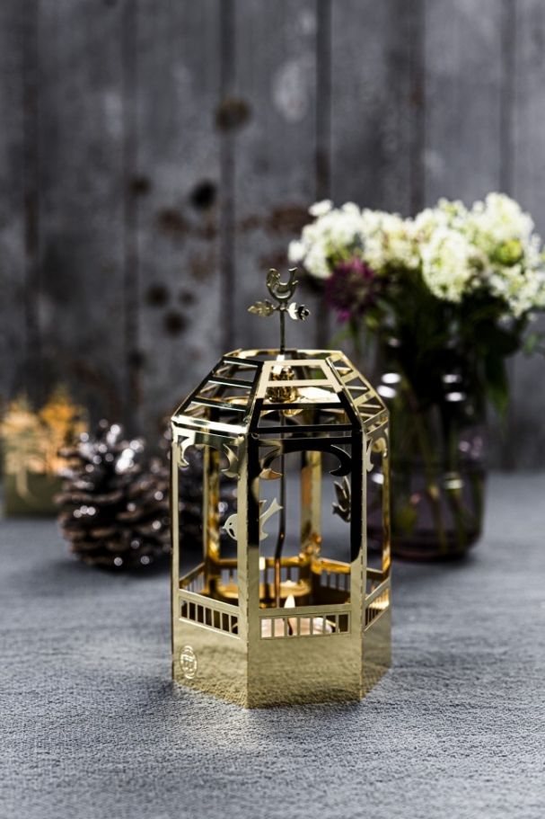 This sensation has been transferred to life through Jette's magical scissors, and the result is a beautiful, golden Pavillion with decorative wreaths of the crab apple tree and birds flying gently around when you light up the tealight.