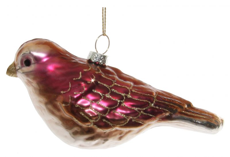 Glass bird gold-burgundy glitter beck