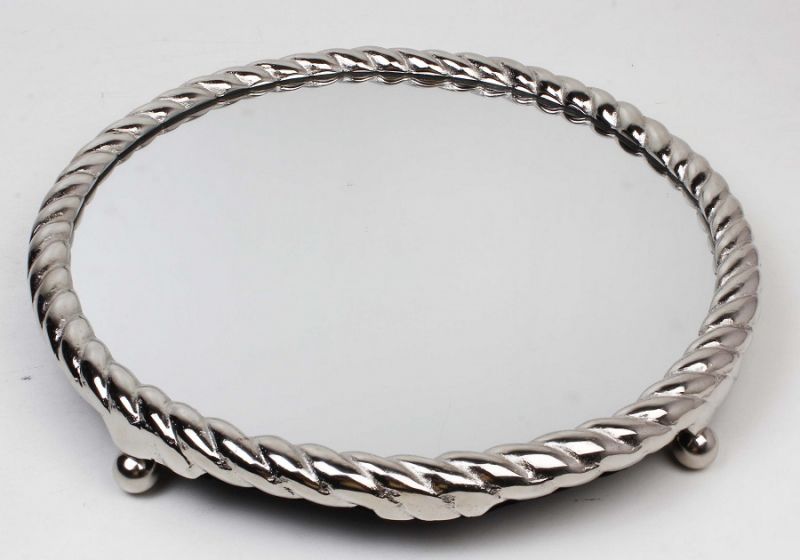 ROUND MIRROR TRAY NICKEL 'TORSADE'