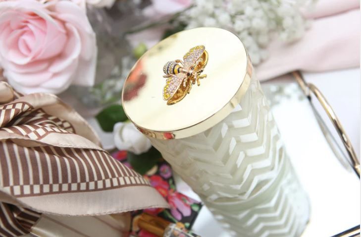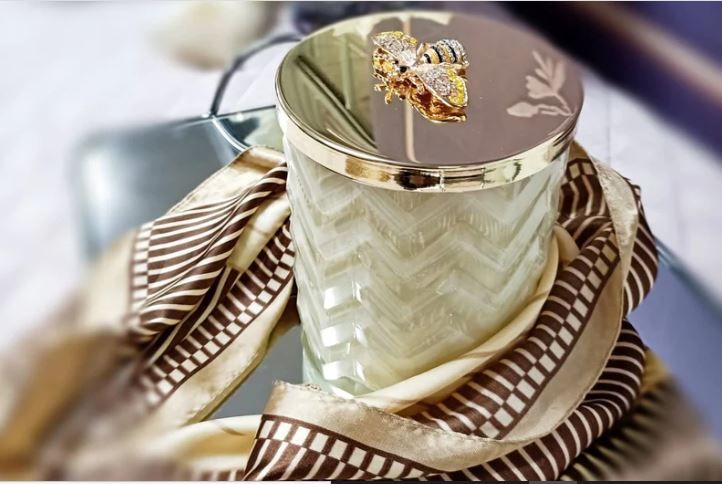 HERRINGBONE CANDLE WITH SCARF BLOND VANILLA - CREAM & GOLDEN BEE LID