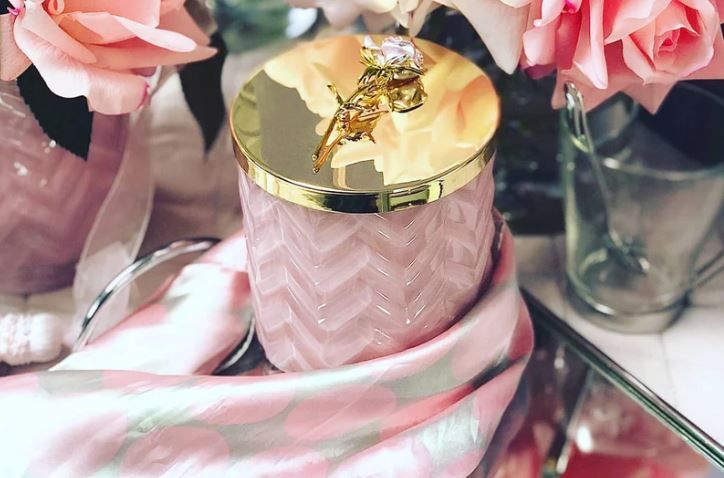 COTE NOIRE - HERRINGBONE CANDLE WITH SCARF - PINK - ROSE LID - CHARENTE ROSE