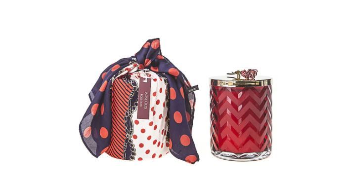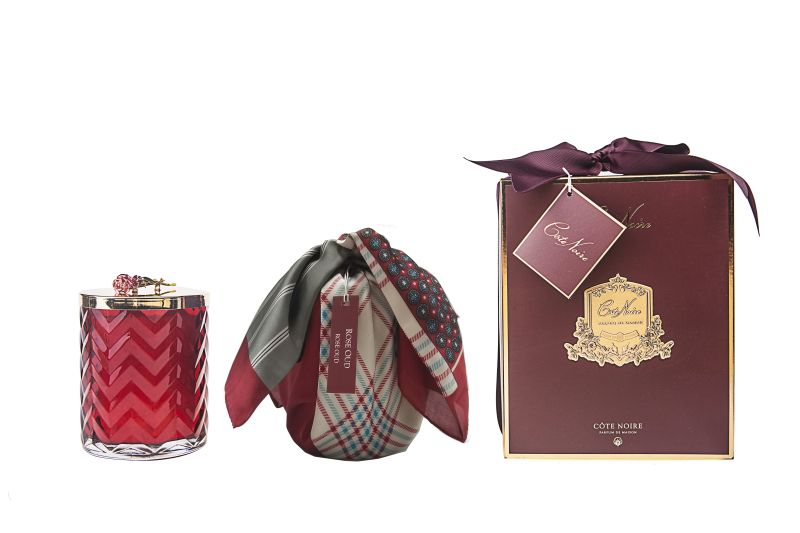 Home FRAGRANCE HERRINGBONE CANDLE WITH SCARF ROSE OUD - RED & RED ROSE LID