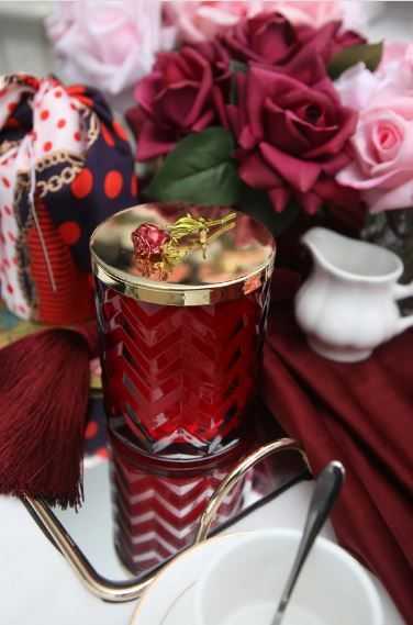 HERRINGBONE CANDLE WITH SCARF ROSE OUD - RED & RED ROSE LID