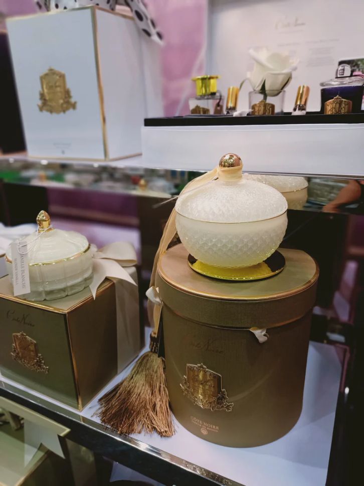 These Art Deco candles come in decorative re-usable glass adorned with an elegant Côte Noire gift box.