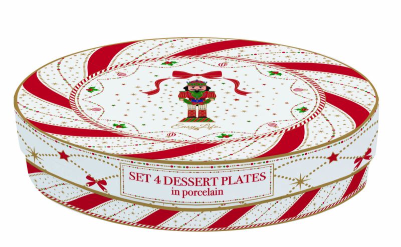 Set 4 porcelain dessert plates Ø 19 cm in hat box