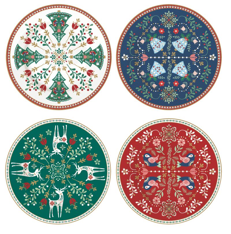 Set 4 porcelain dessert plates CHRISTMAS FOLK