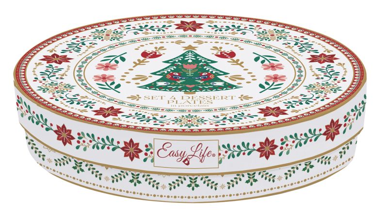 Set 4 porcelain dessert plates Ø 19 cm in hat box CHRISTMAS FOLK