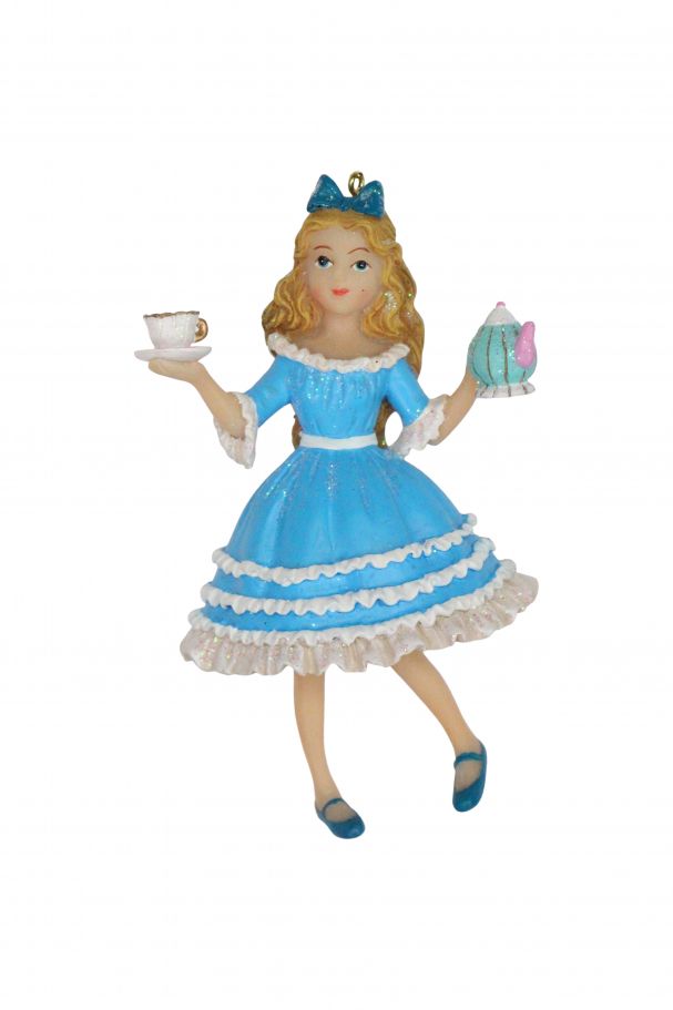 Сладка висяща украса на Алиса от приказката за Алиса в страната на чудесата. Перфектното допълнение към всяко вдъхновено от приказките коледно дърво. Модерен обрат на класическите декорации. Изработен от смола.