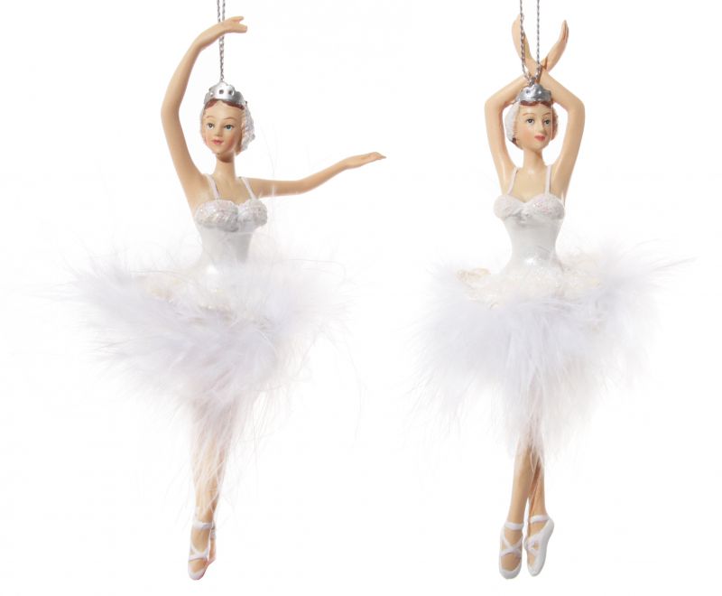 КОЛЕДНА ДЕКОРАЦИЯ БАЛЕРИНА С ПАЧКА ОТ БЕЛИ ПЕРА