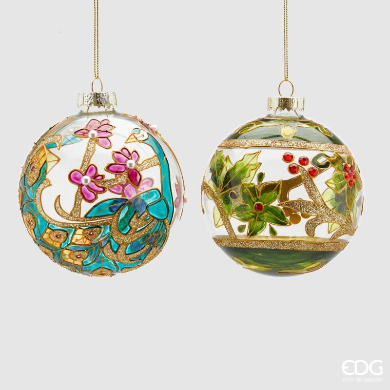 КОЛЕДНА СТЪКЛЕНА ТОПКА С ЦВЕТНА ДЕКОРАЦИЯ