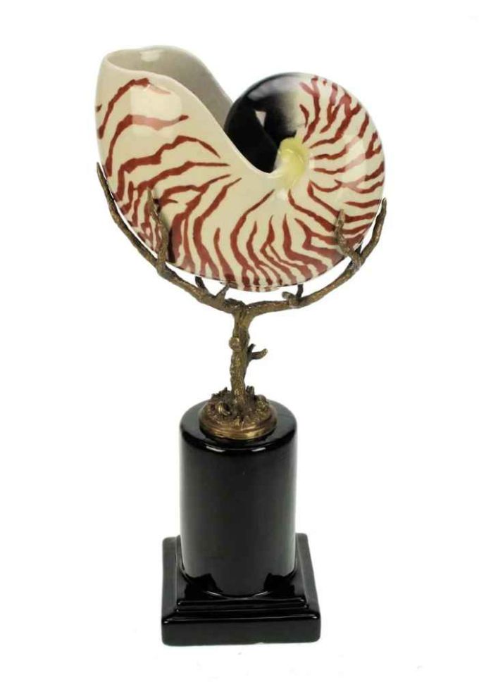 Включващ реалистична фигура на черупка върху стойка, това привличащо вниманието акцентно произведение добавя нотка елегантност на тема океан към декора.