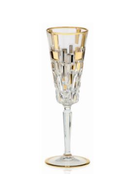 Кристална чаша за шампанско със златни и платинени орнаменти - Мурано