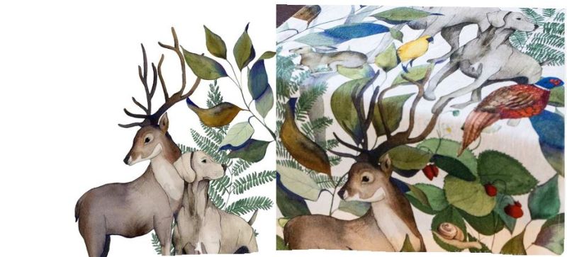 Салфетки за хранене к-т 4бр. с коледен мотив, дигитален печат върху чист лен