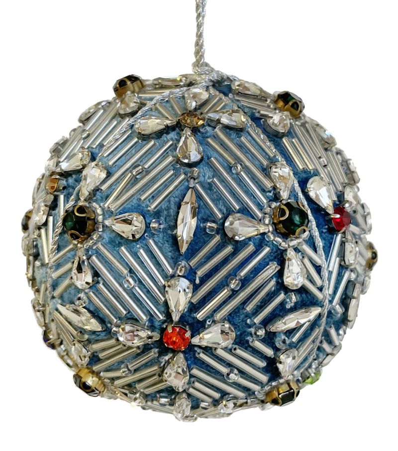 Кадифена топка синьо с цветни бижута
