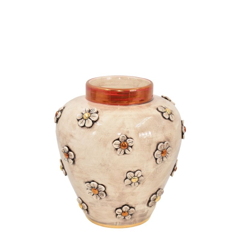 Ваза Boccia с цветя h 27 седеф антично злато и блясък