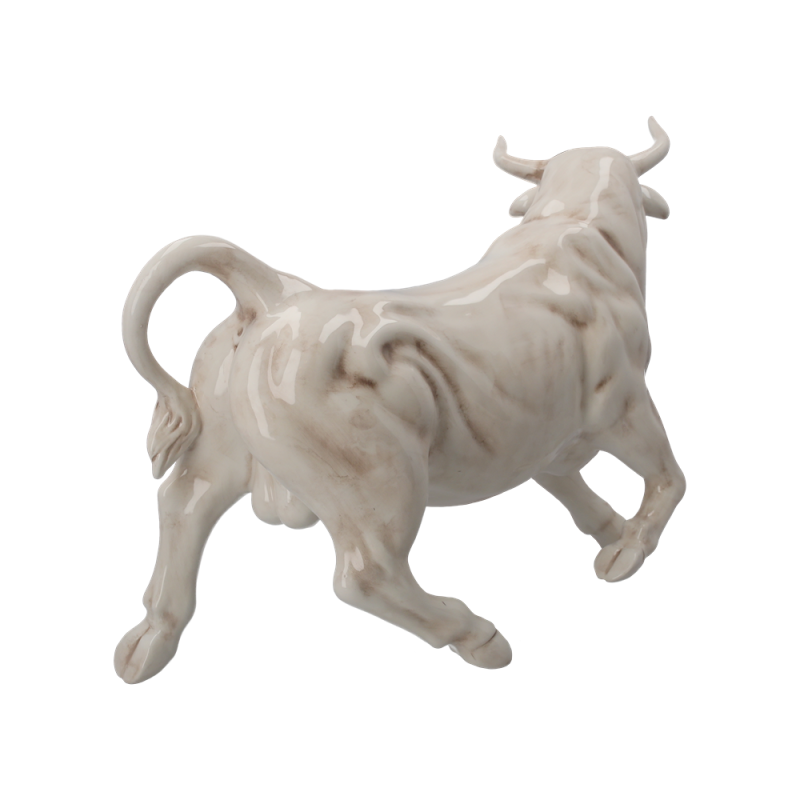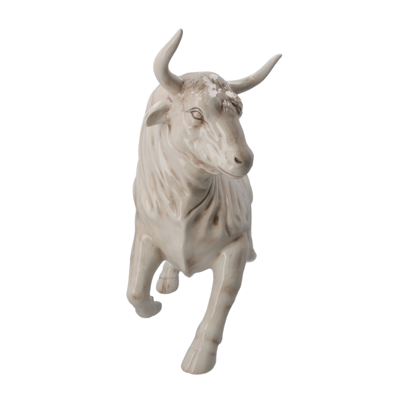 decorated and painted by hand. 100% made in Italy. It is characterized by a dynamic pose that expresses strength and determination. The careful details of the muzzle, horns and muscles give realism and majesty to the figure. The neutral and shiny color gives elegance and versatility, making it suitable for any environment, both classic and modern. Ideal for adding a touch of character and symbolism to the decor.