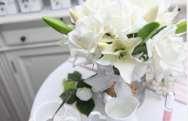 The flowers have been skilfully hand crafted & use a special, natural coating to give every petal a life-like touch & appearance. The petals have been infused with fine fragrance. Luxury Lilies & Roses are beautifully packaged in a ribboned Cote Noire box. What is included: Handmade 13 Real touch Roses arrangement sealed in a gel in hand blown Vase 2 x Perfume sprays Luxurious Hand Made Cote Noire round box We recommend spraying the petals with water on a regular basis to minimize the petals from drying out. To clean the petals, you can also rinse your floral arrangements upside down under a water tap and gently remove the dust off the petals with your fingers. Pat dry with a towel and it will help keep your arrangements fresher for longer. Enclosed Fragrances Rose Petal: Young and fragrant rose petals warmed by the afternoon sun. Top notes of pink rose layered with notes of peony and iris. A fresh, innocent scent tamed with lingering notes of hibiscus. Lily Flower: Top notes of oriental lily, middle notes of bergamot and base notes of dried clove.