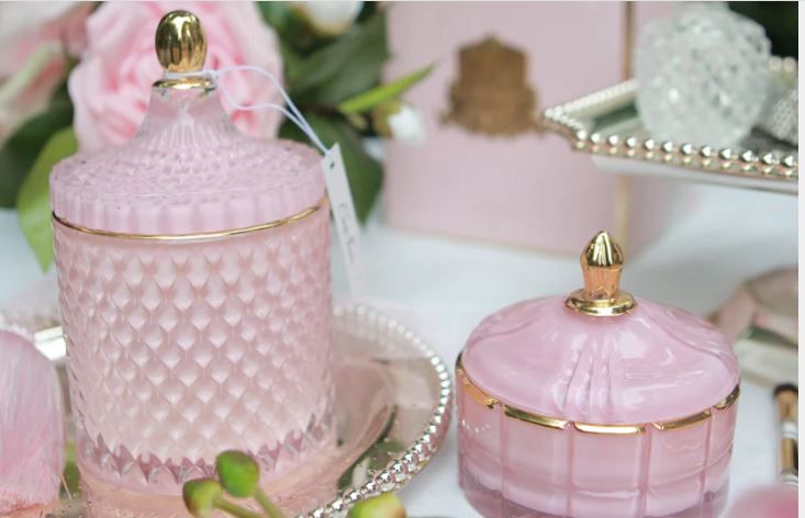 GRAND PINK & GOLD ART DECO CANDLE - PINK CHAMPAGNE