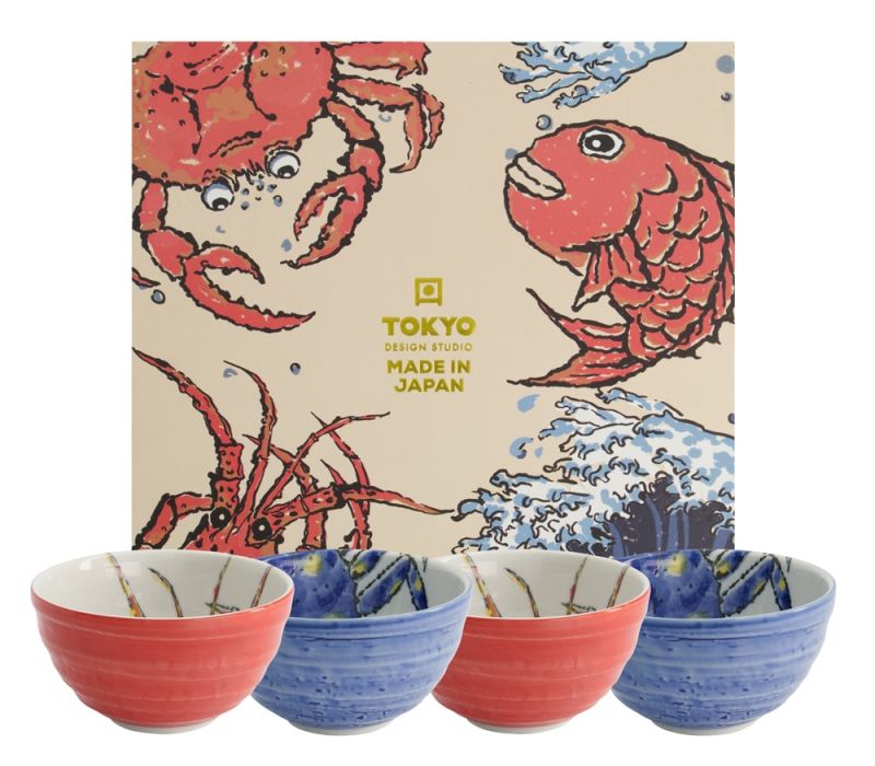 Seafood Bowl Giftset 4pcs 13.2x7.3cm 500ml Lobster Rd & Crab Bl