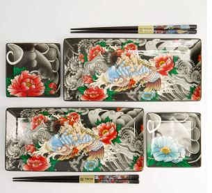 Kawaii Yakuza Carp Sushi Plate Giftset Set4 w/Chop
