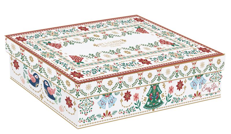 Set 4 porc.coffee cups & saucers CHRISTMAS FOLK