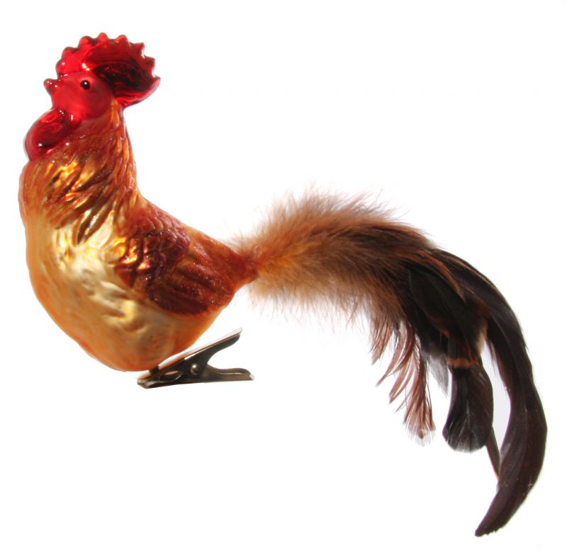 Стъклена петел с опашка от пера