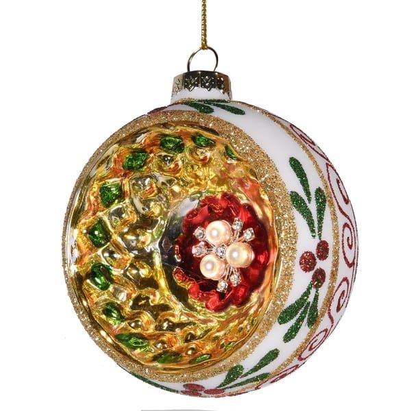 КОЛЕДНА ДЕКОРАЦИЯ СТЪКЛЕНА ТОПКА - БЛЕСТЯЩА ПЕРЛА И ЗЛАТО
